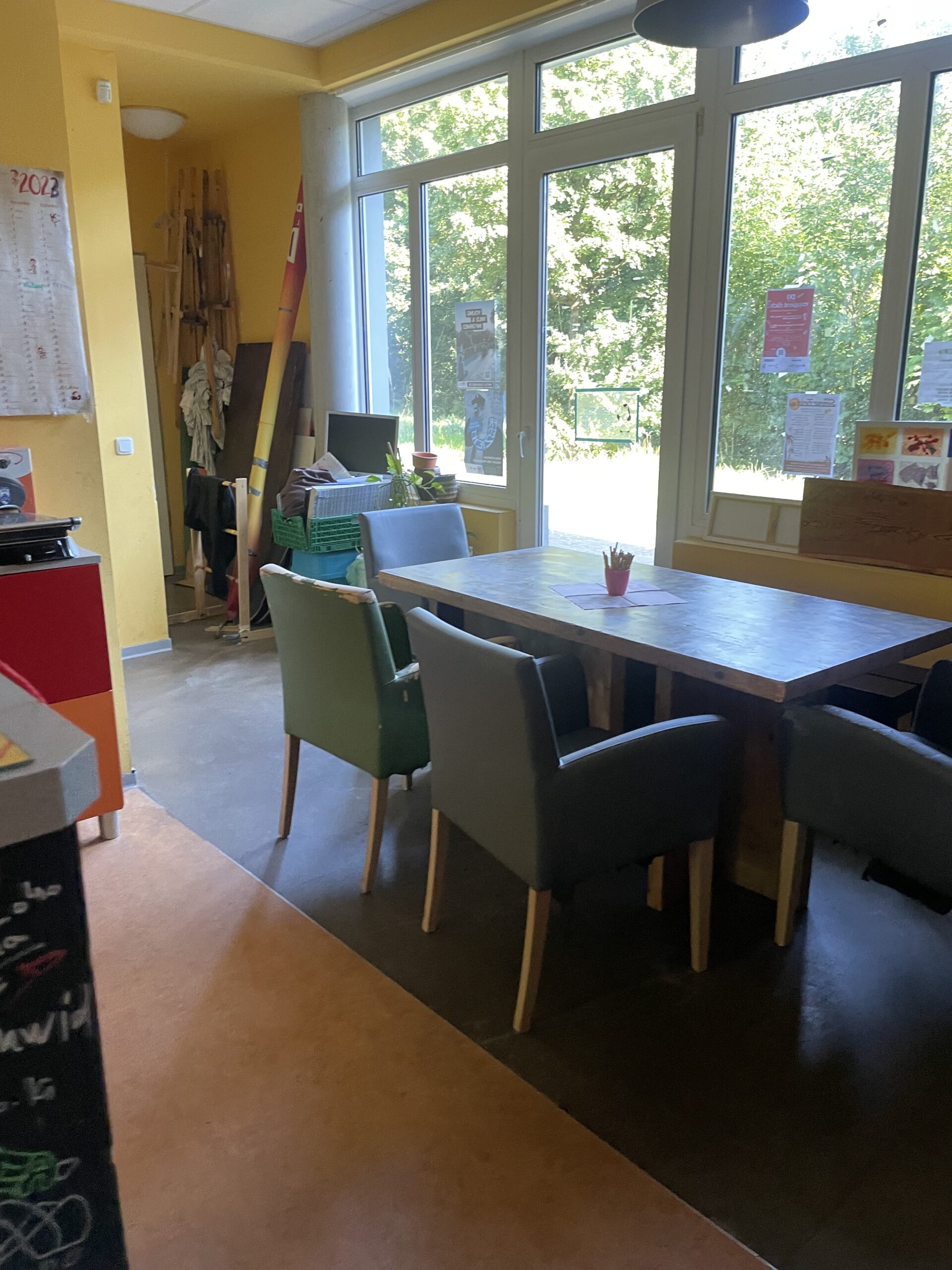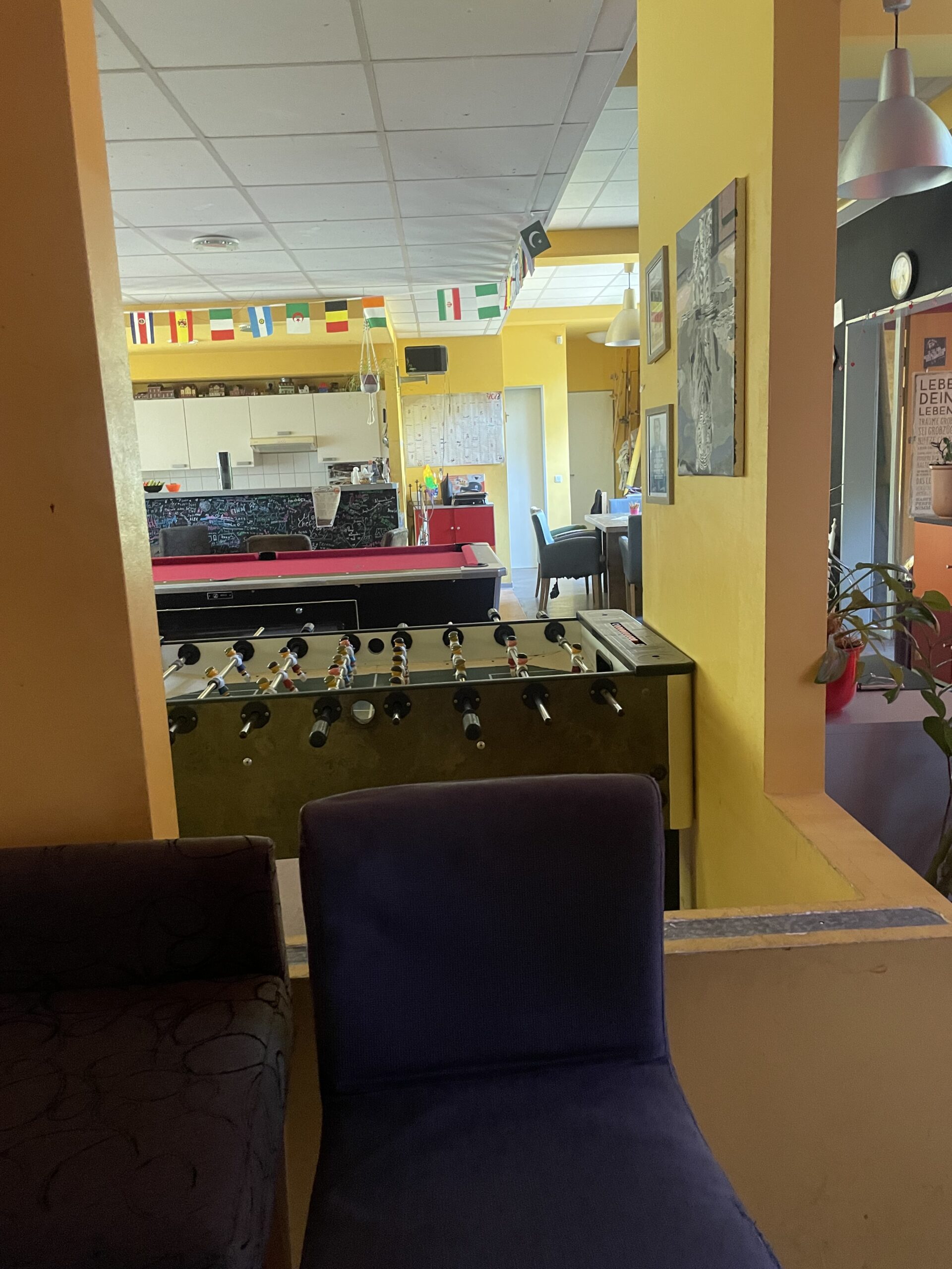 Ich würde den Treff im Allgemeinen als entspannend und motivierend bezeichnen. Beinahe an jeder Ecke findet man Postkarten oder Poster mit motivierenden Sprüchen. Hier einige Beispiele: „Sei immer du selbst.“ „Tanze im Regen.“ „Hör niemals auf zu träumen.“ Solche Sätze findet man fast überall im Treff und sie schaffen es immer wieder, einen zu motivieren. Man hat das Gefühl, dass die Betreuer wissen, mit welchen Gefühlen Jugendliche konfrontiert sind und was sie am besten aufmuntert.